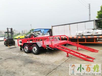 3.车尾配2套翻转爬梯(框架式结构)便于履带车自行上下,平板车两侧各配两件5吨支腿,前部牵引架配一套万向轮,用于平时支撑车辆平行;www.xbaixing.com小百姓网